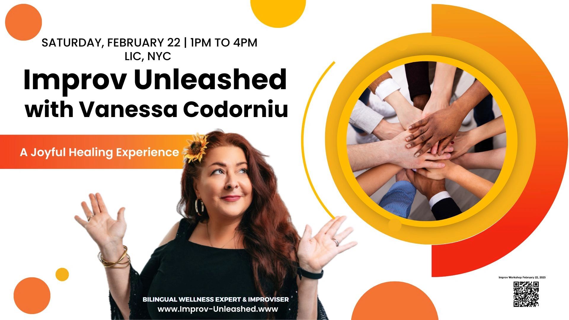 Our first LIVE workshop for 2025 will be held in LIC, NYC! If you've been busy holding it together, moving forward, hustling and doing "all the things"- this workshop is for you! Step into a joyous space where you can't get it "wrong" because it's all IMPROV!